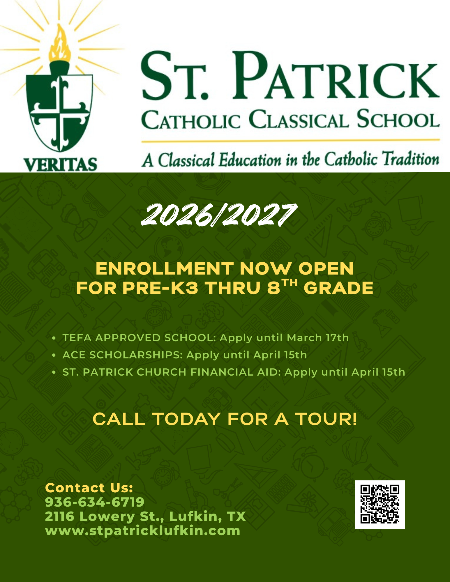 We invite you to join our St. Patrick Classical School family, where students are guided to think critically, engage deeply with knowledge, and develop a strong moral compass.